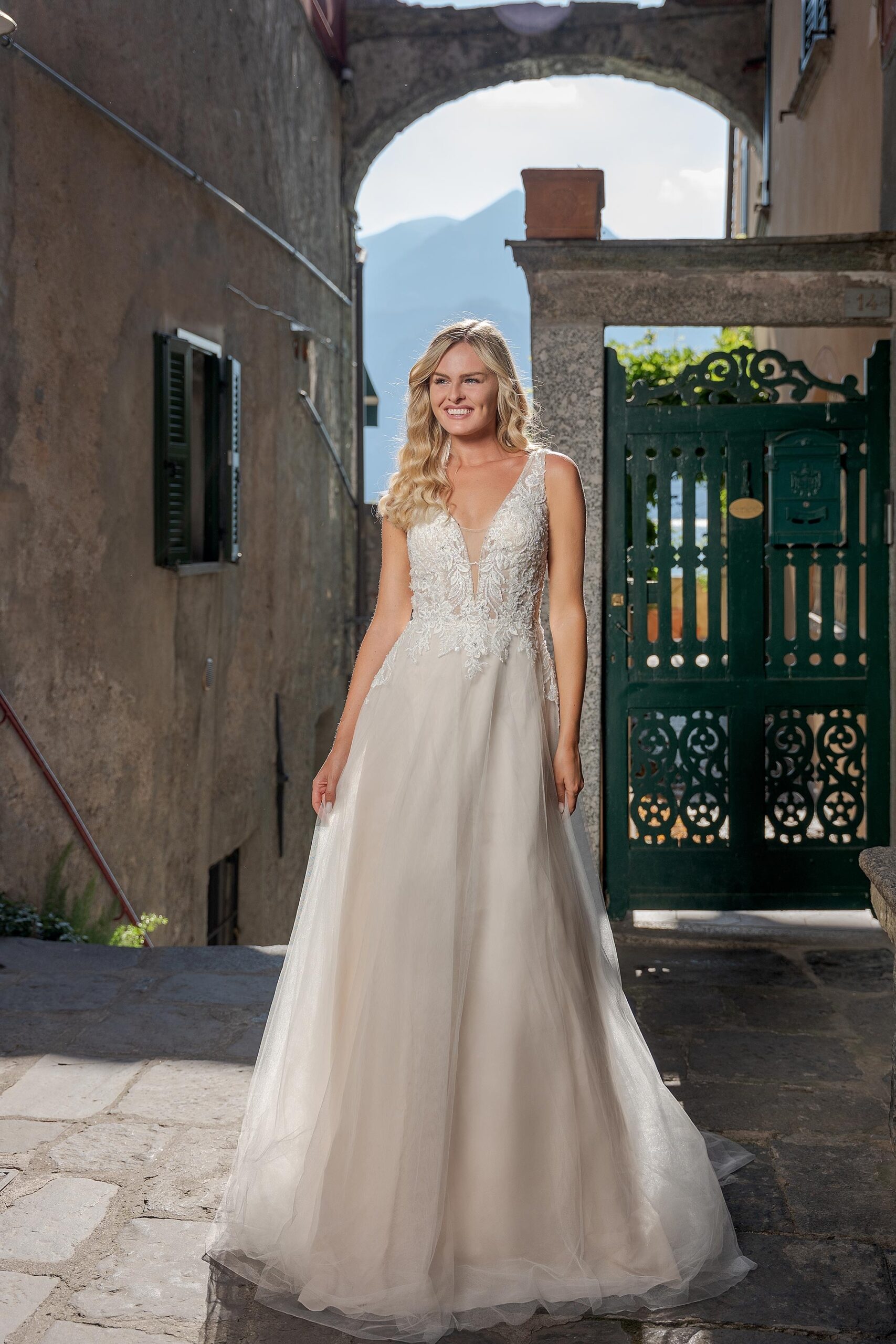 Brautkleid VN20 ivory / rumpink