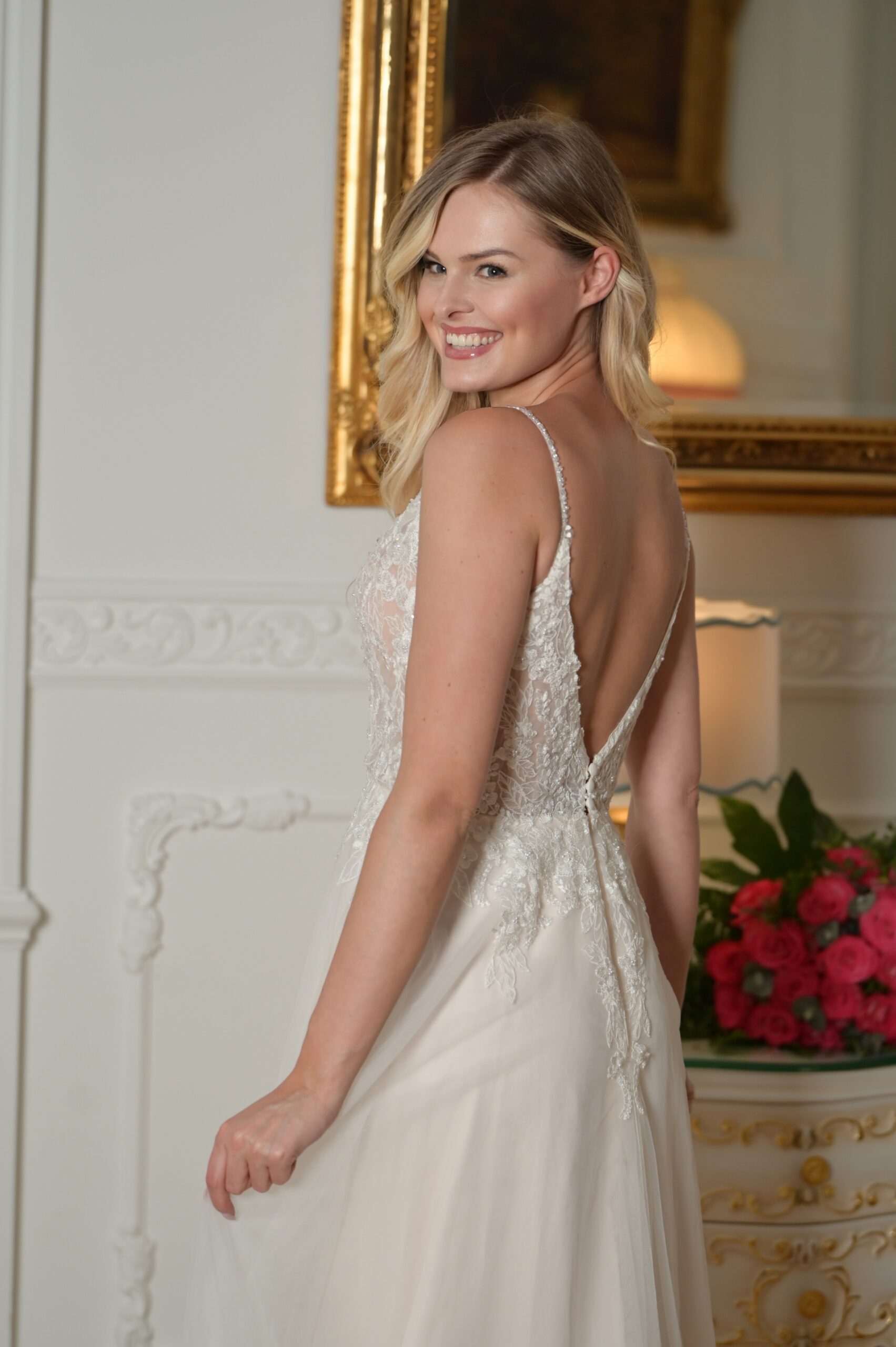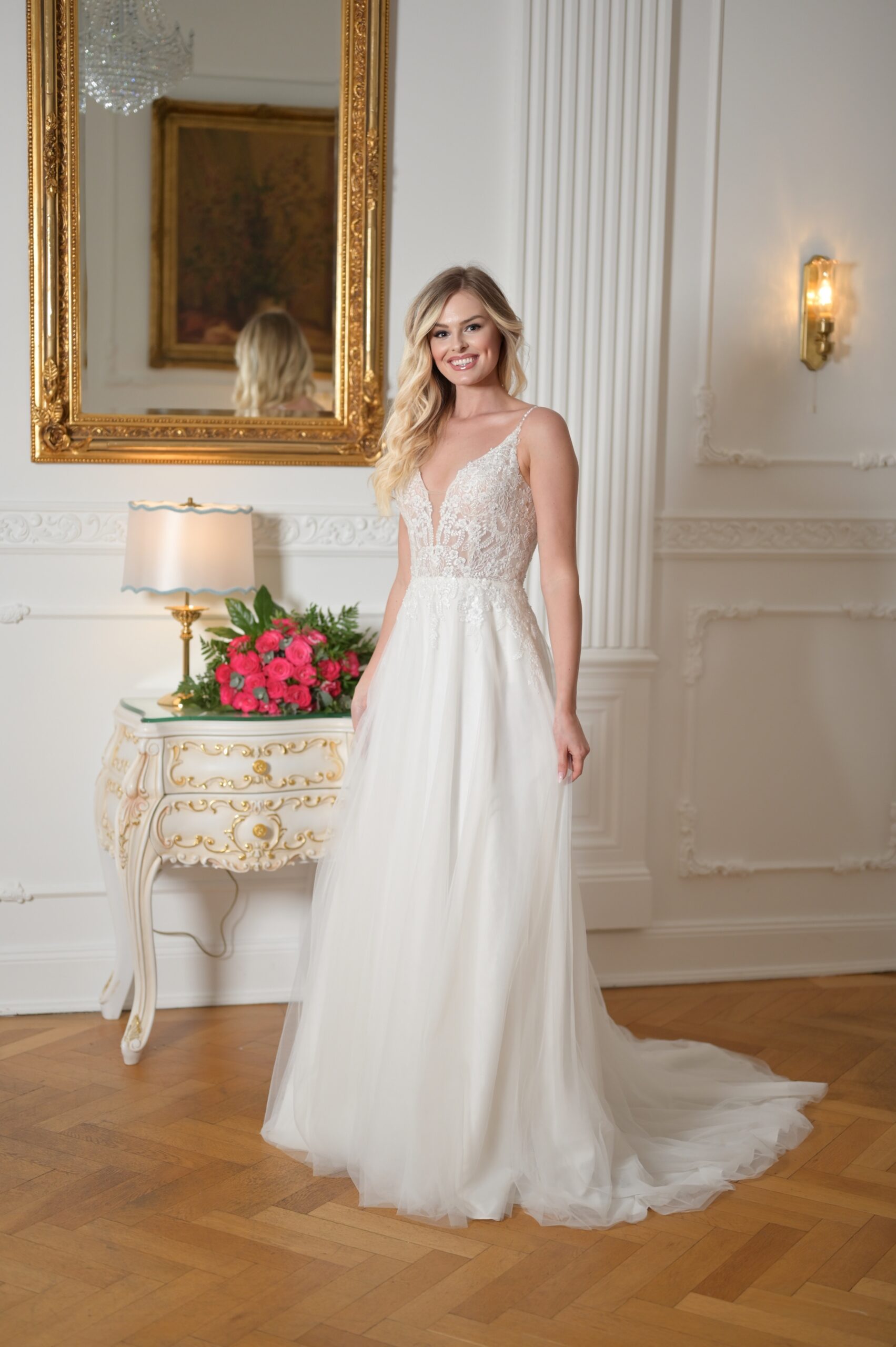 • A-Linie in den Farben Ivory oder Ivory/rumpink mit Tüllrock